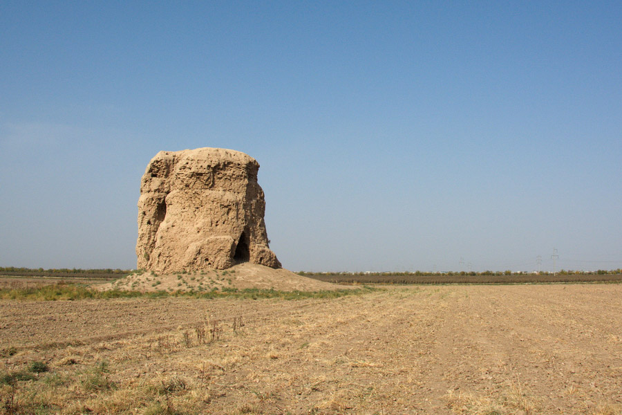 To the south-east of the ancient settlement of Old Termez, on the side of the road leading to modern Termez, there are the remains of a structure known as the Zurmala Tower. The ruins of the tower have long attracted the attention of archaeologists. Back in 1926, they suggested that it was nothing but a Buddhist stupa. A detailed survey, conducted half a century later, confirmed that this is a cult structure that belongs to the era of the heyday of the Kushan kingdom. The tower was badly damaged by the time, however, it makes an impressive impression. It is laid out of raw square brick. All bricks have a characteristic brand in the form of a feature and two pits. Such bricks were used in Bactria only in the Kushan time, that is, at the beginning of the III century. n. e. Scientists estimated that it took almost 1,200,000 such bricks to erect a stupa. A solid block of raw brick has in the upper part a small chamber for relics – a reliquary.